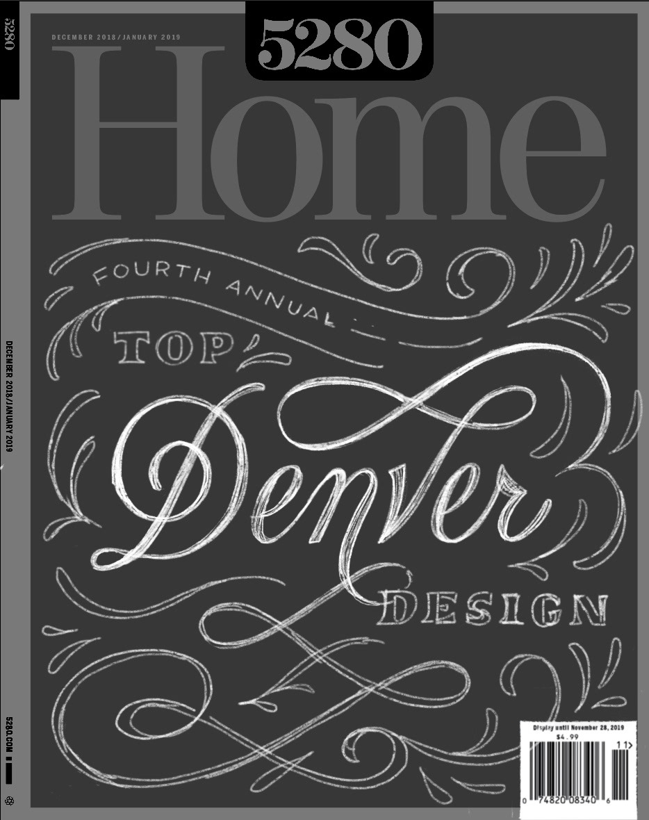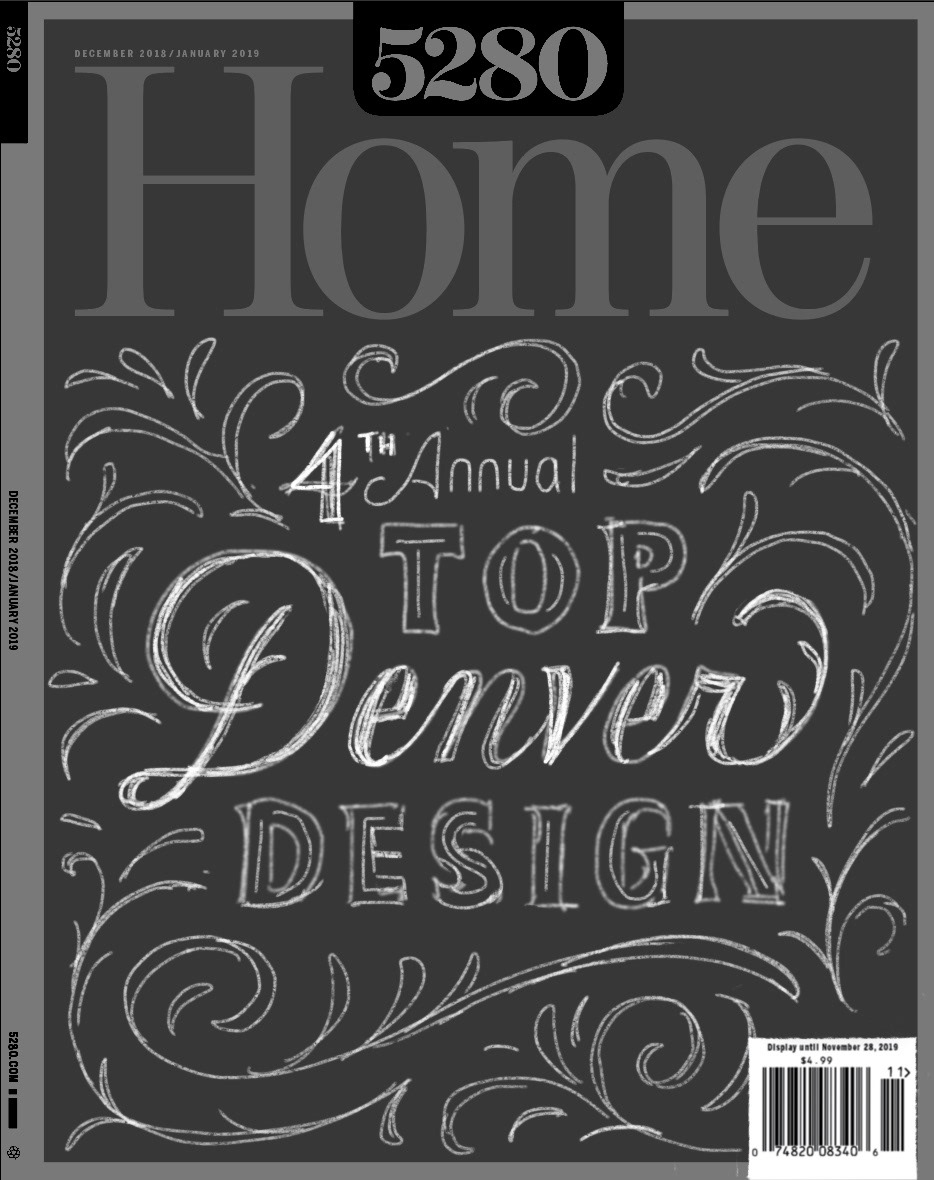 I had the honor of designing the December/January issue of the Denver's premier home design magazine, 5280 Home. This issue celebrated the best of Denver's interior spaces. The art direction called for clean elegance with fancy scripts, embellishments and modern san serifs. I took inspiration from the Art Deco era by using bold geometric sans serifs and diagonal lines in the composition.