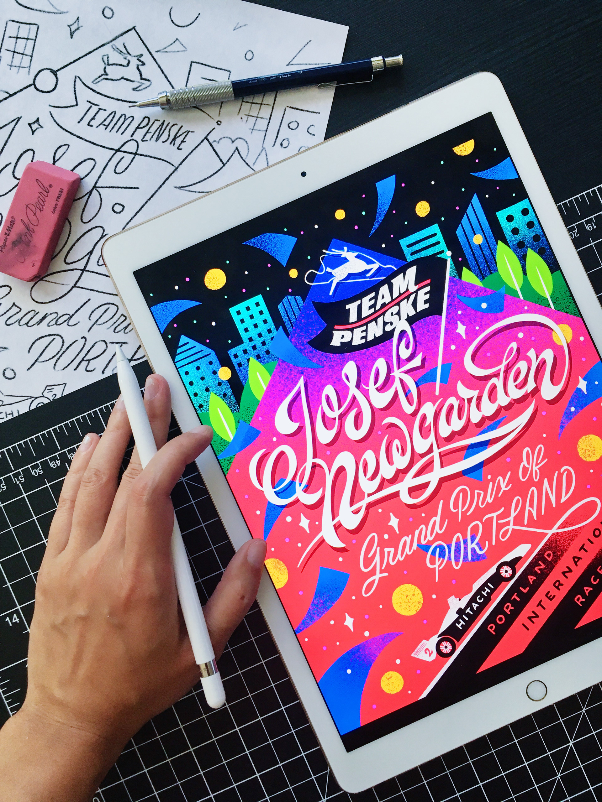 Digital illustration for Hitachi Motorsports and the #ArtistoftheRace series. The series highlighted No. 2 IndyCar driver, Joseph Newgarden of Team Penske through illustrations, videos, and motion graphics made by talents across the world. This piece celebrated the driver as he competed in the Grand Prix of Portland.