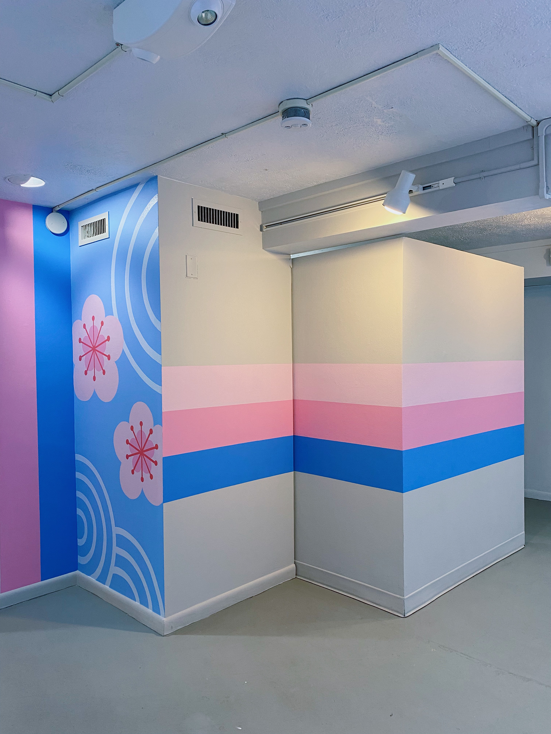 The SLC Arts Council commissioned me to paint a mural based on the theme of hope for the Art Barn's 90th anniversary. I used this opportunity to create a vibrant design that includes my Taiwanese roots. The plum blossoms are Taiwan's national flower (although, not a native flower). The beautiful pink blossoms are a symbol of resilience in times of hardship due to their ability to bloom in cold harsh winters. I chose the phrase "Let hope find you" because, in order to see and feel hope, you have to be open to the idea that hope exists. This mural can be viewed at the Art Barn / Finch Gallery during its open hours. Paint used: Behr in flat sheen.