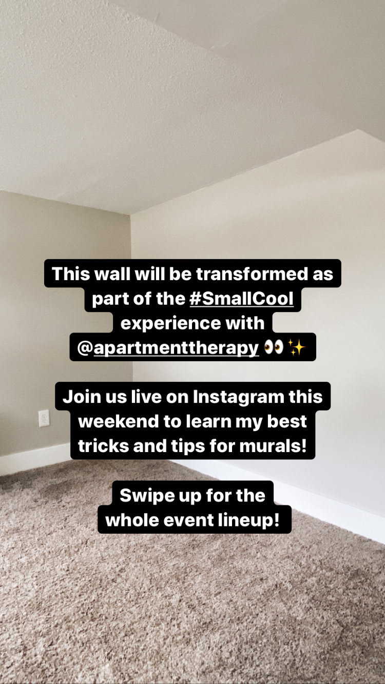 I was commissioned for a mural using paint sponsored by Behr for a virtual event. The Small/Cool Experience is Apartment Therapy's interactive shopping showcase and action-packed multi-day social event where they share decorating tips and tricks from top interior designers.