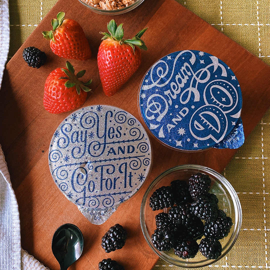 To celebrate the launch of Tillamook's new Creamery Collection yogurts, I was one of three artists commissioned to design limited-edition foils for the packaging. The phrases of "Dream and Do" and "Say Yes and Go for it" are inspired by my journey of quitting my graphic design career to become an illustrator. Each design was sketched out digitally on the ipad and vectored with Adobe Illustrator. The yogurts are available at select Safeway, Fred Meyer, and Albertsons in OR, CO, NV, ID, NM, WA, and WY. To learn more about the yogurt collection, visit Tillamook's brand page here.