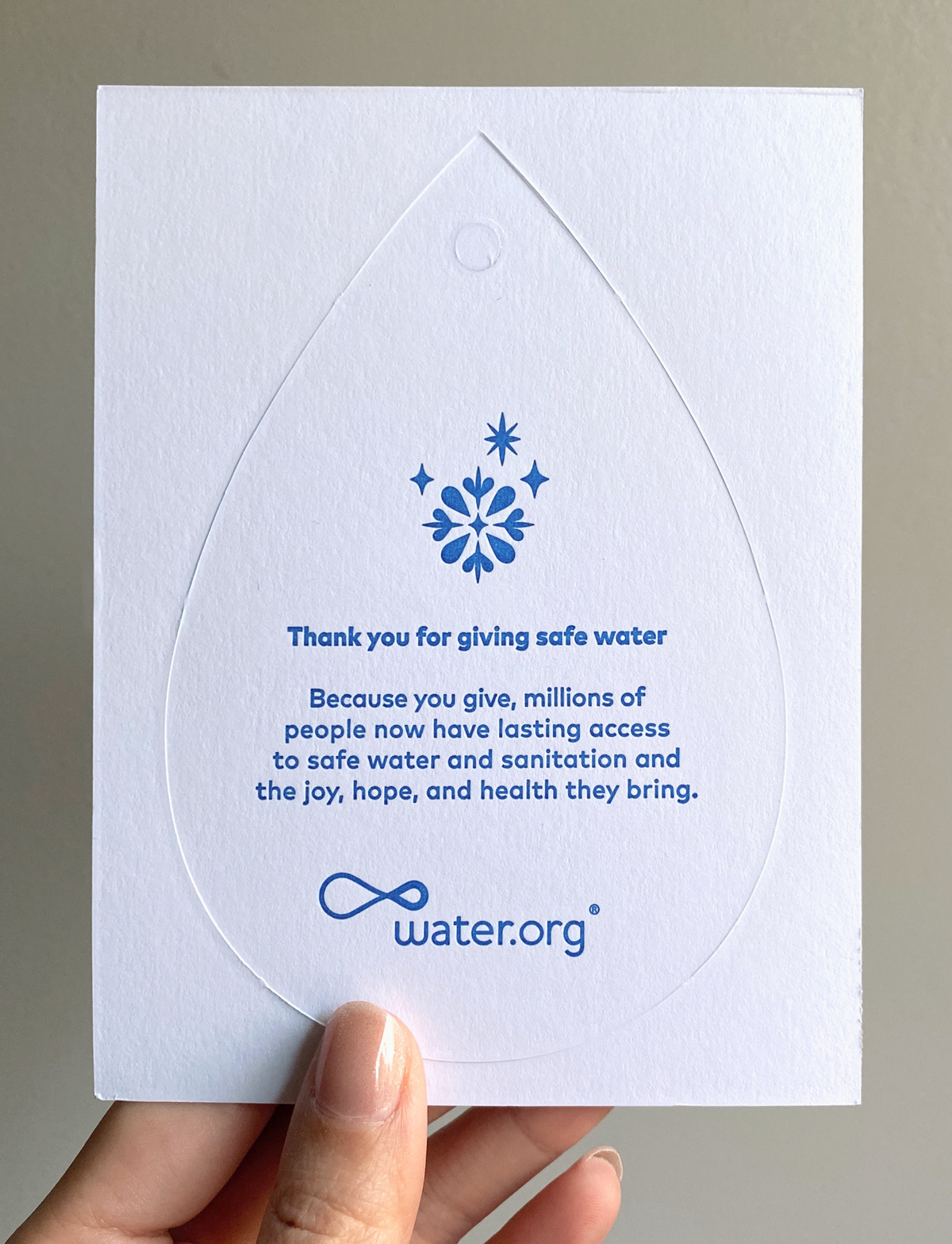 I was commissioned to illustrate custom lettering and icons for their 2024 holiday campaign. In addition, I designed their holiday thank you card, which was letterpressed in ink and silver foil by Hammerpress in Kansas City. The card includes a water drop cutout that can be punched out and used as a paper ornament.